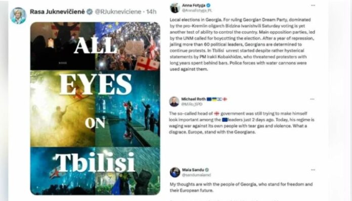 ხელისუფლების დამხობის მოთხოვნით მიმდინარე აქციას მხარდაჭერა გამოუცხადა ლიეტუვის პარლამენტის წევრმა და თავდაცვის ყოფილმა მინისტრმა ლაურინას კაშჩუნასმა, რომელმაც X-ზე დაწერა: “სამშობლოს კავშირი – ლიეტუველი ქრისტიან-დემოკრატები” დღეს ქართველებს უდგანან გვერდში – სანამ რუსული გავლენისგან არ გათავისუფლდებით და ევროკავშირისა და ნატოს ნაწილი არ იქნებით”.